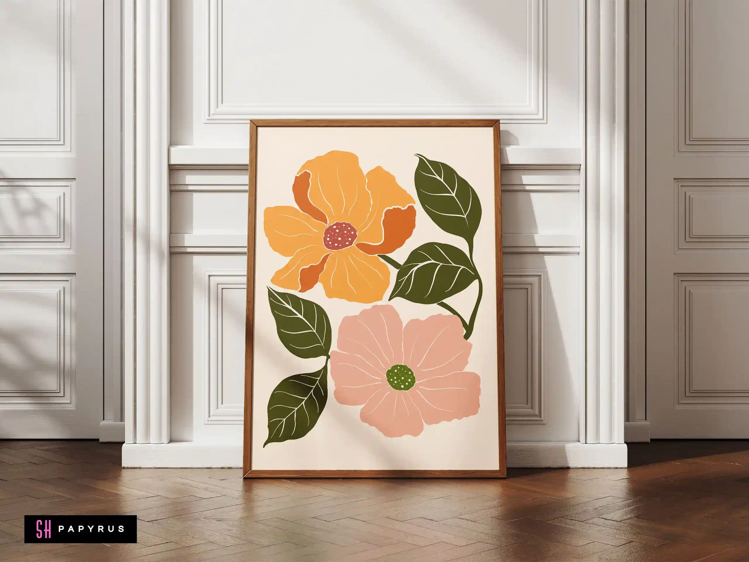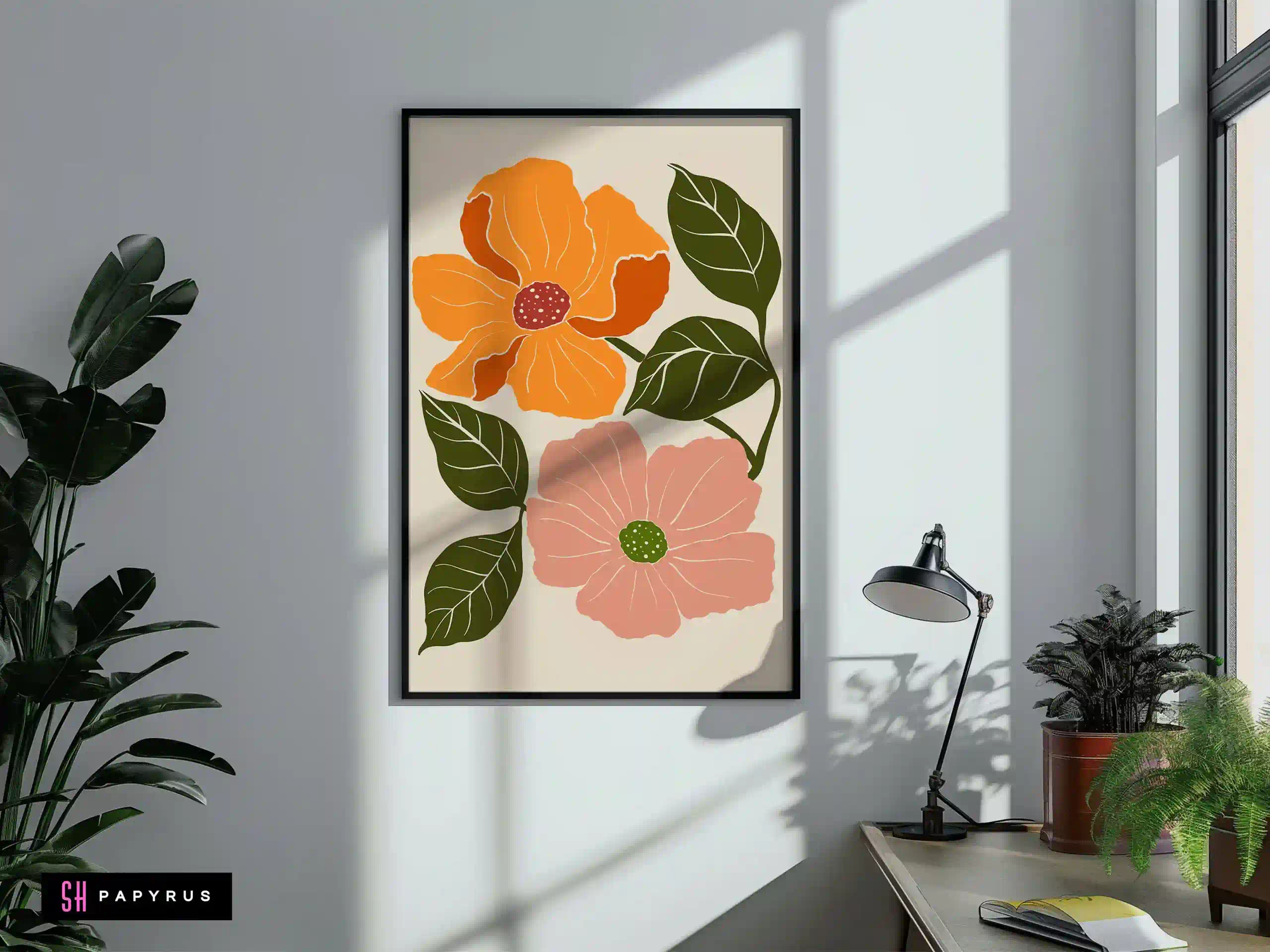 You’ll love this Charming Orange & Pink Botanical Flowers Print! A beautiful, warm floral arrangement, it features a large orange flower and a soft pink flower with dotted centers and dark green, line-art leaves. It’s a gentle and inviting piece, perfect for a cozy room. The stylized, modern look of the flowers combined with the warm, friendly color palette makes it a unique and charming addition to any wall. It’s perfect for a bedroom, nursery, or a living room gallery wall. Choose your perfect format: an instant Digital File download, a museum-quality Giclee Poster (printed on thick, archival paper), a ready-to-hang Canvas, or a Framed Print in a sleek metal or natural wood frame. We use only the best fade-resistant inks to keep the colors happy and bright.