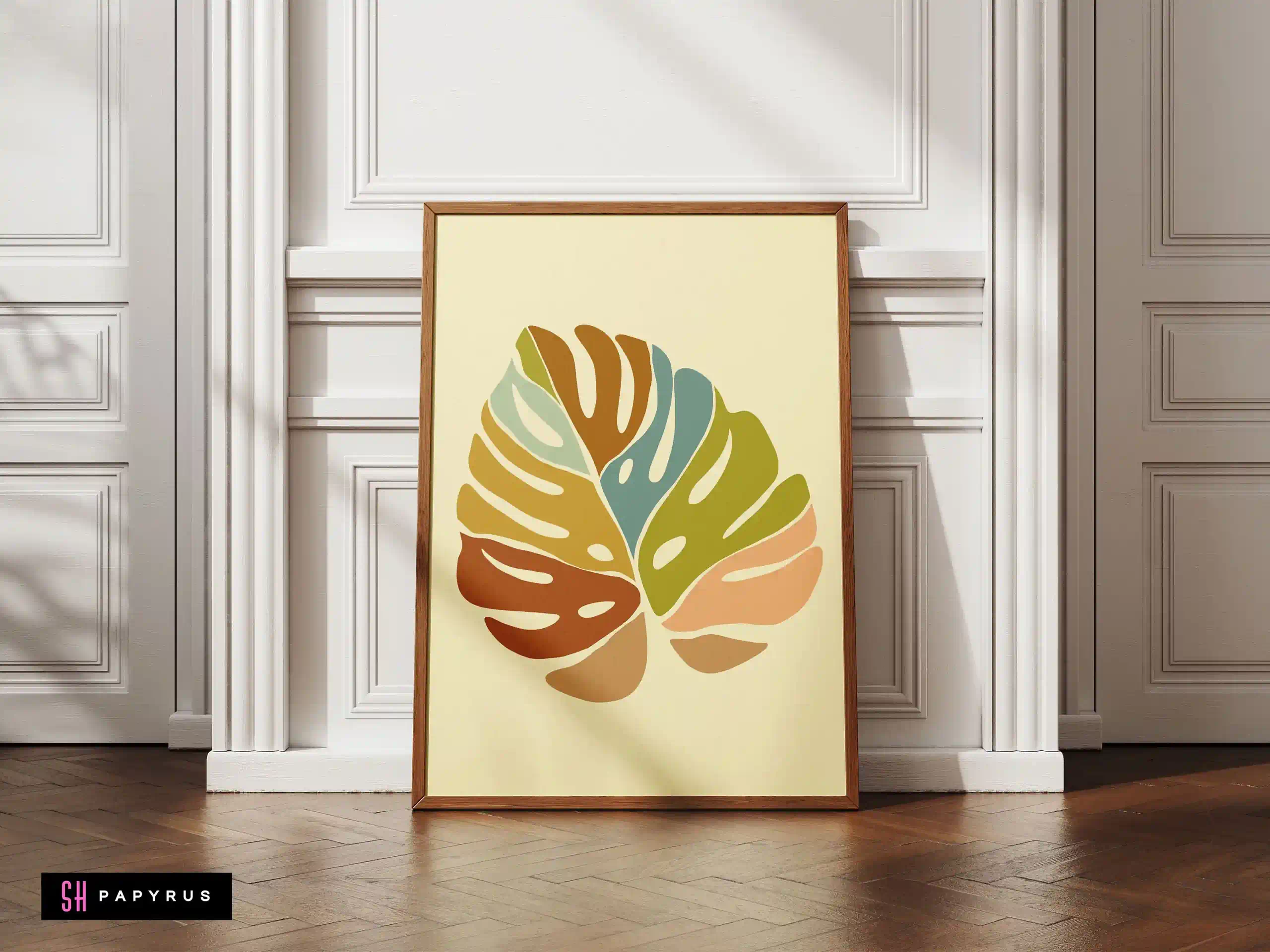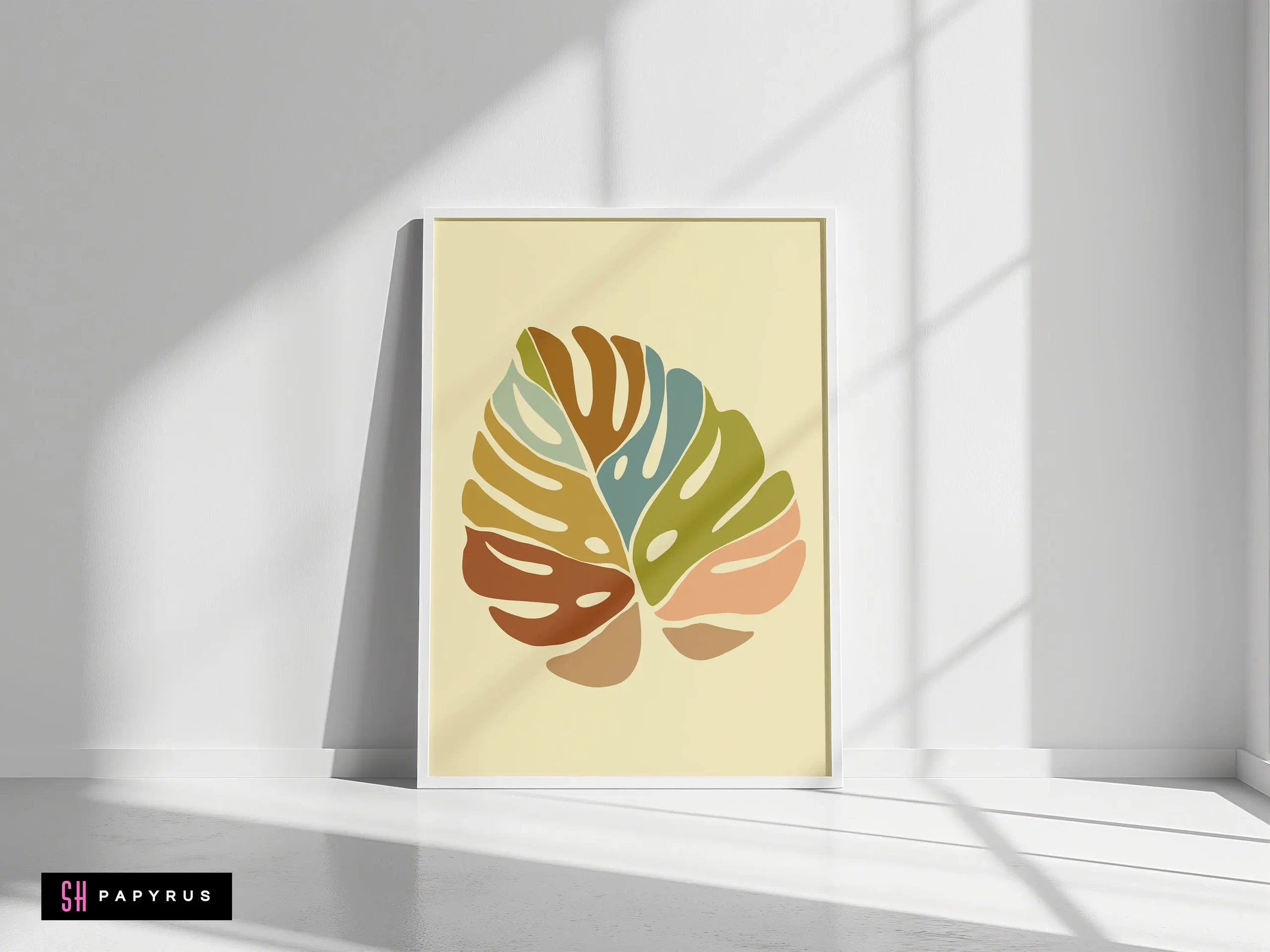 Express your style with a Colorful Abstract Monstera Leaf Art Print! A playful and modern take on a classic, this monstera leaf is filled with an abstract pattern of earthy terracotta, sage, mustard, and brown. It’s a unique, artistic piece perfect for a boho or eclectic space. This print is a fantastic way to add a pop of color and a touch of artistic, botanical flair to your room. It’s a conversation starter and a fun, modern piece for a living room, home office, or creative studio. Your new art is available as an instant Digital File, a premium Giclee Poster (with vibrant, saturated colors), a gallery-wrapped Canvas, or a professionally Framed Print in a metal or wood frame, shipped ready to hang.