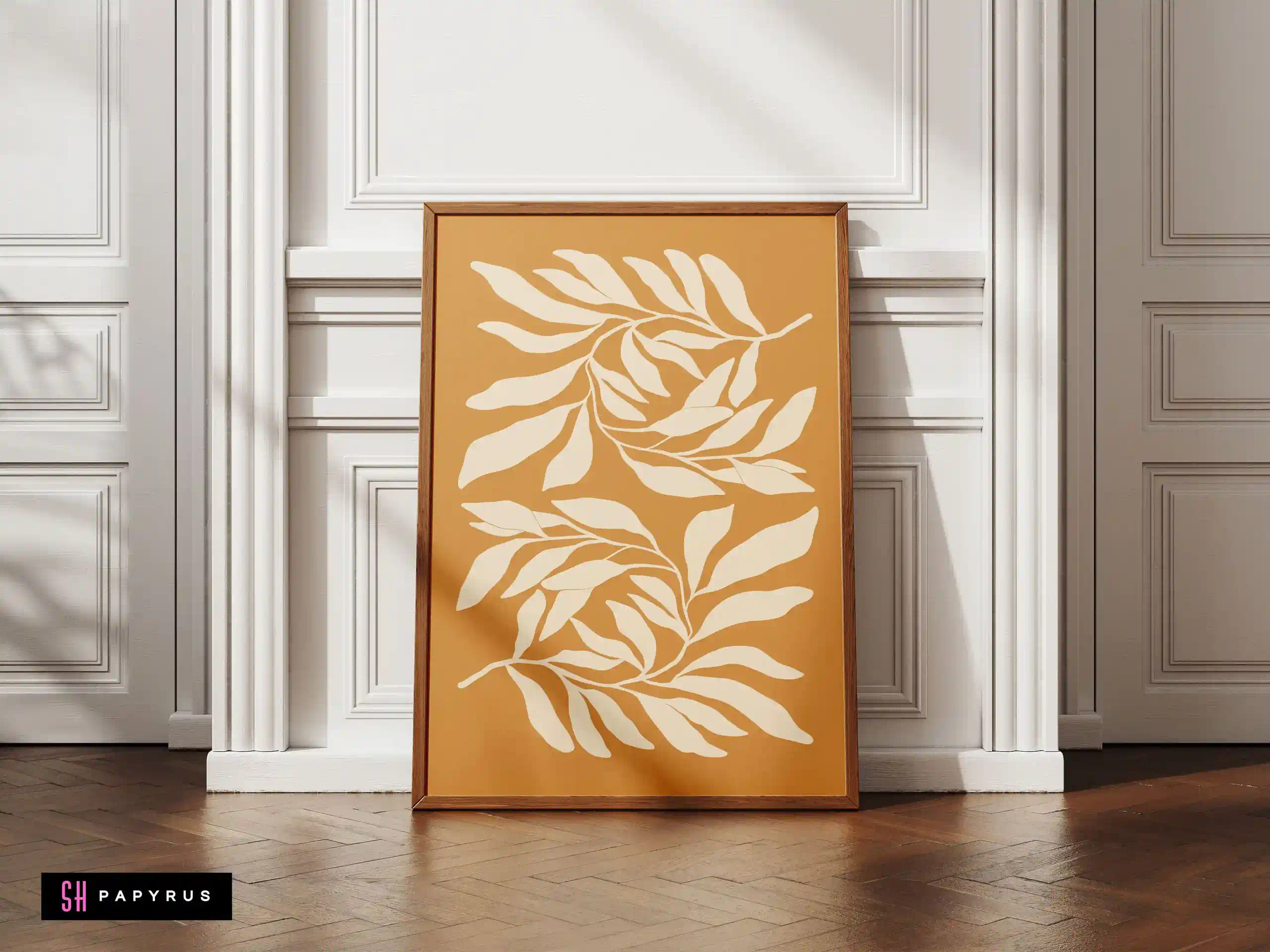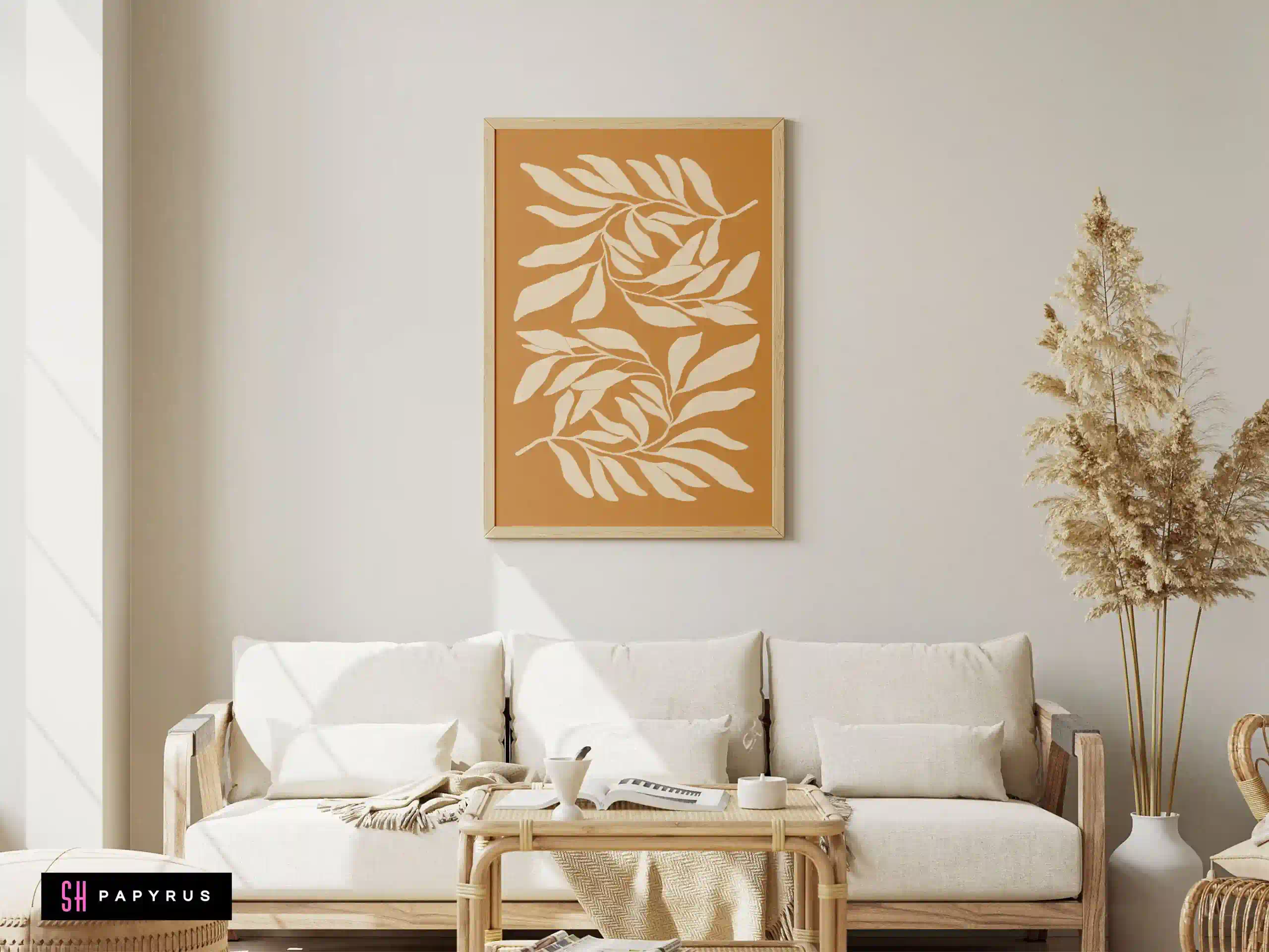 Welcome Elegant Cream Botanical Branches on Warm Gold Art into your home. A minimalist and sophisticated two-tone print, it features delicate, cream-white branches against a warm, golden-tan background. It’s a beautiful, earthy piece that adds a touch of natural elegance. The simplicity of the design is its strength, creating a calm, serene, and organic feel. This print is ideal for a minimalist, Japandi, Scandi, or boho-style home. It’s perfect for a bedroom, living room, or spa-like bathroom where you want to create a tranquil atmosphere. Your new artwork is offered as a high-resolution Digital File, an archival Giclee Poster, a ready-to-hang Canvas, or a complete Framed Print in your choice of a modern metal or natural wood frame.