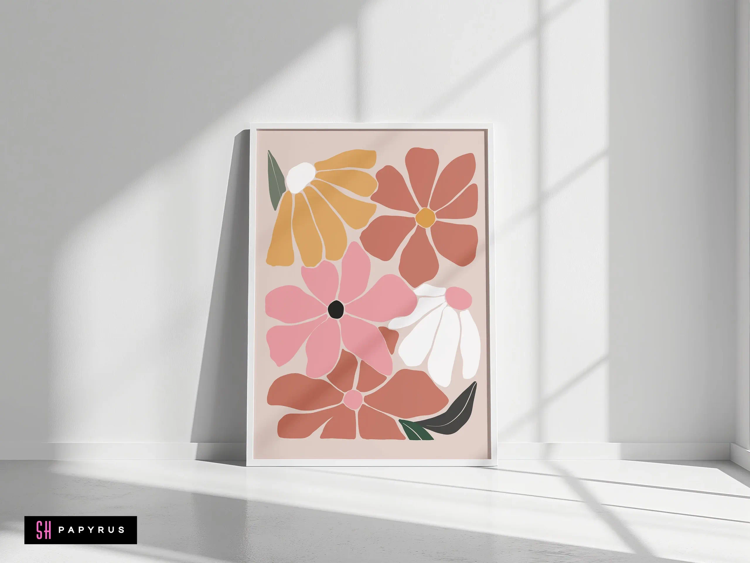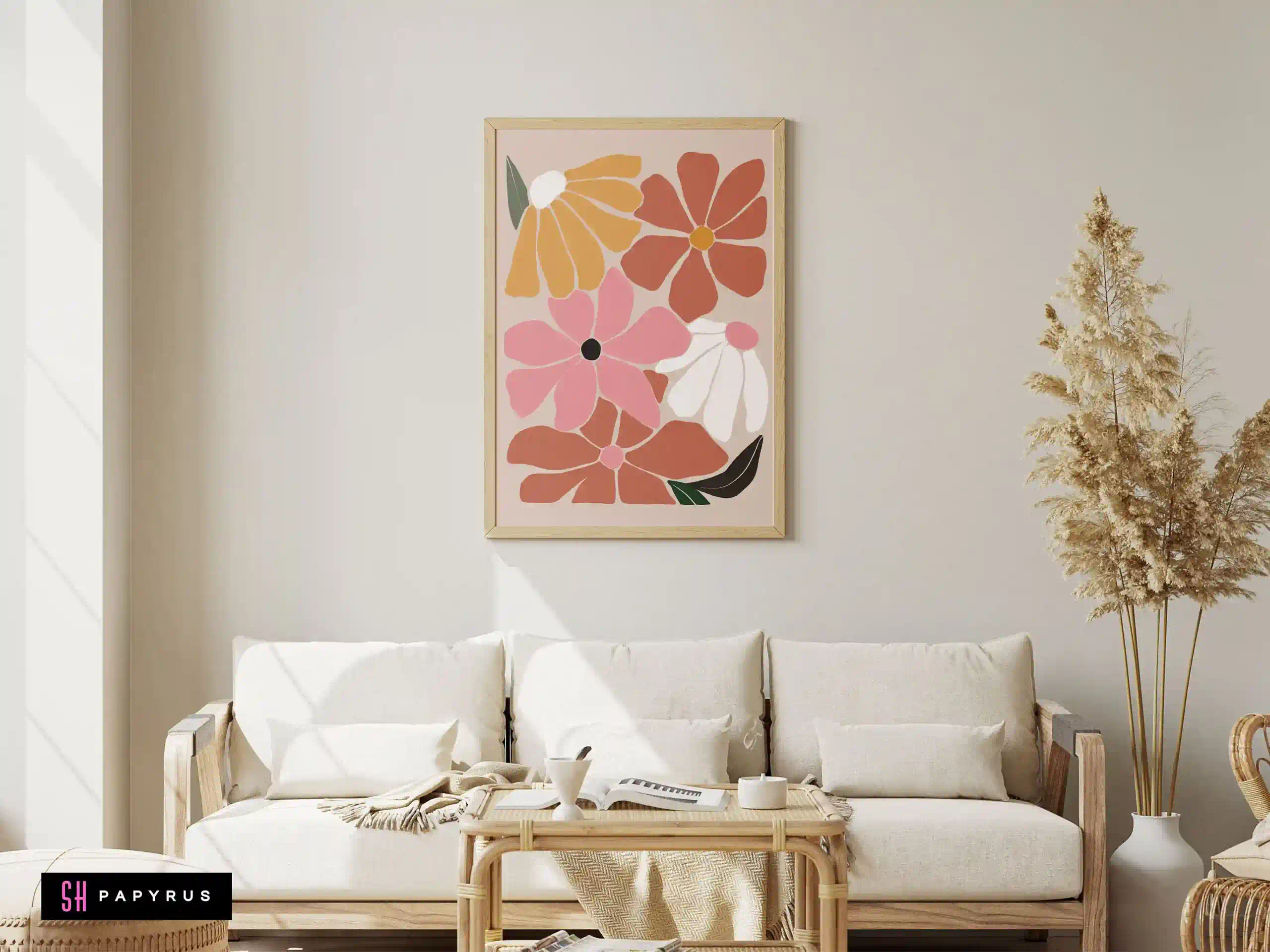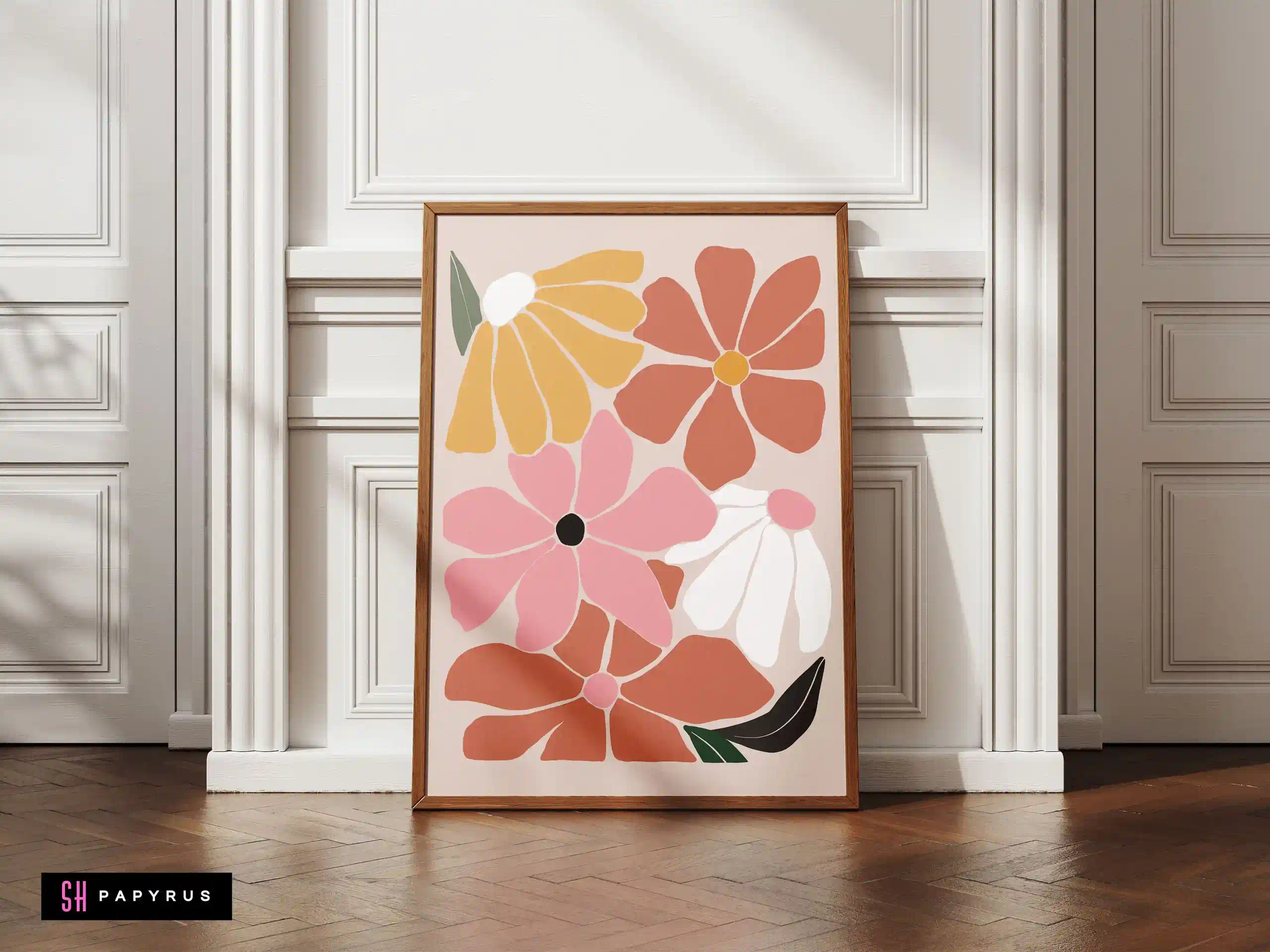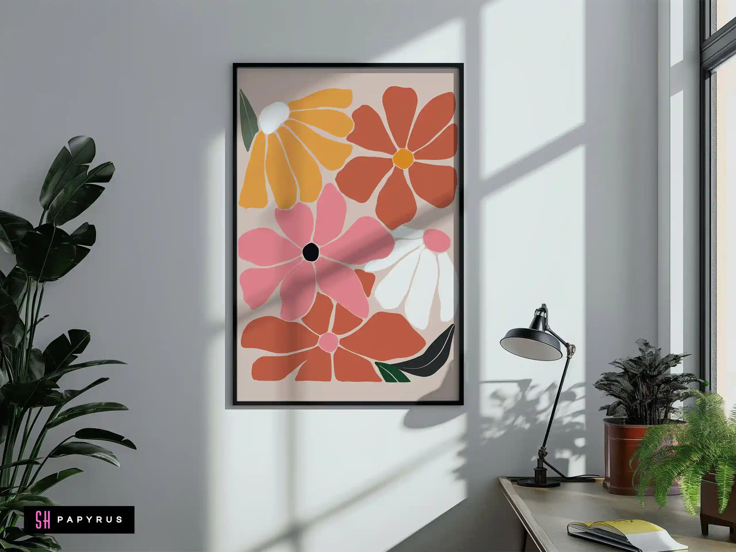 Bring home a Joyful Retro Floral Meadow! A colorful and happy print, it’s covered in a field of large, simple flowers in pink, orange, terracotta, and white. A perfect way to instantly brighten your walls and add a fun, boho vibe. The “Scandi” or “Danish” pastel style of the flowers feels both retro and incredibly modern. This is a wonderful, energetic piece for a child’s room, a playroom, a creative studio, or a kitchen. It’s like a burst of springtime that lasts all year long. Your new artwork is offered as a high-resolution Digital File, an archival Giclee Poster (on thick, non-glare matte paper), a ready-to-hang Canvas, or a complete Framed Print in your choice of a modern metal or natural wood frame. We use only the best, fade-resistant materials. Add this joyful print to your home!
