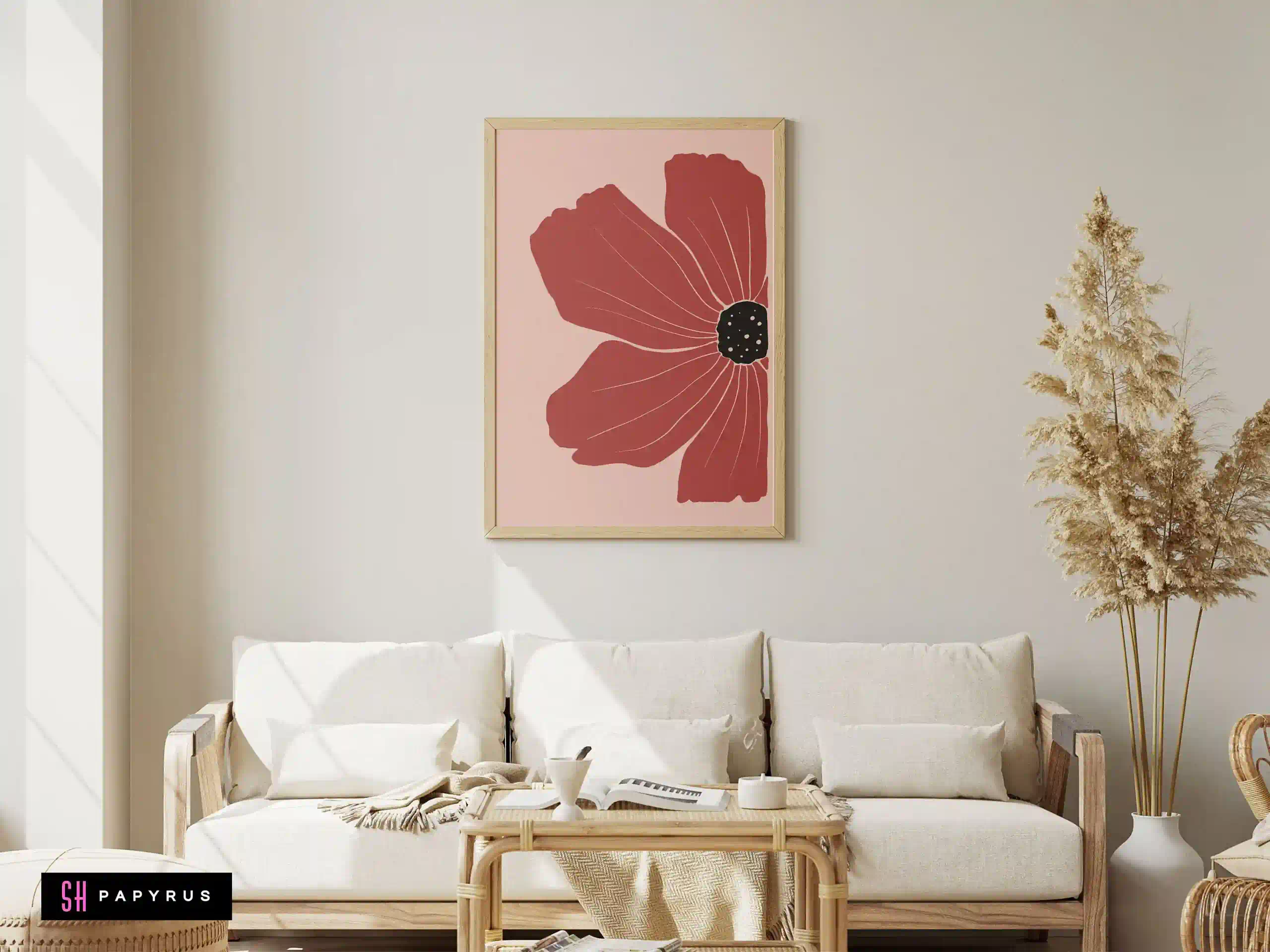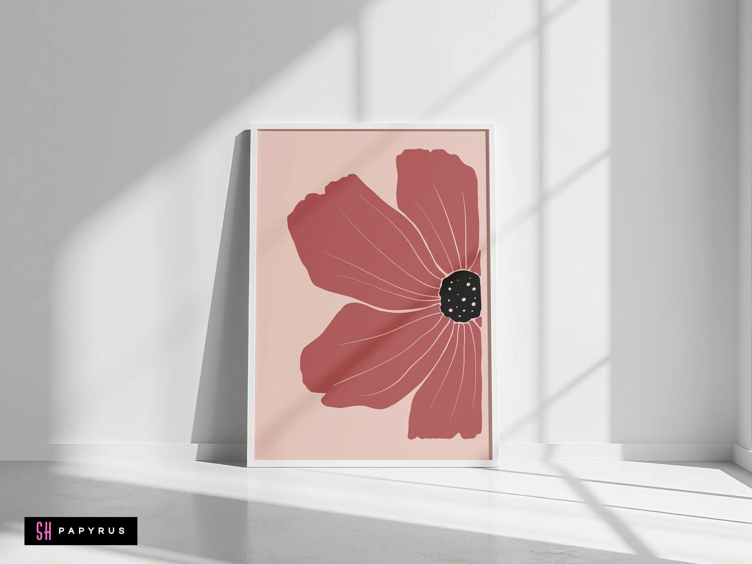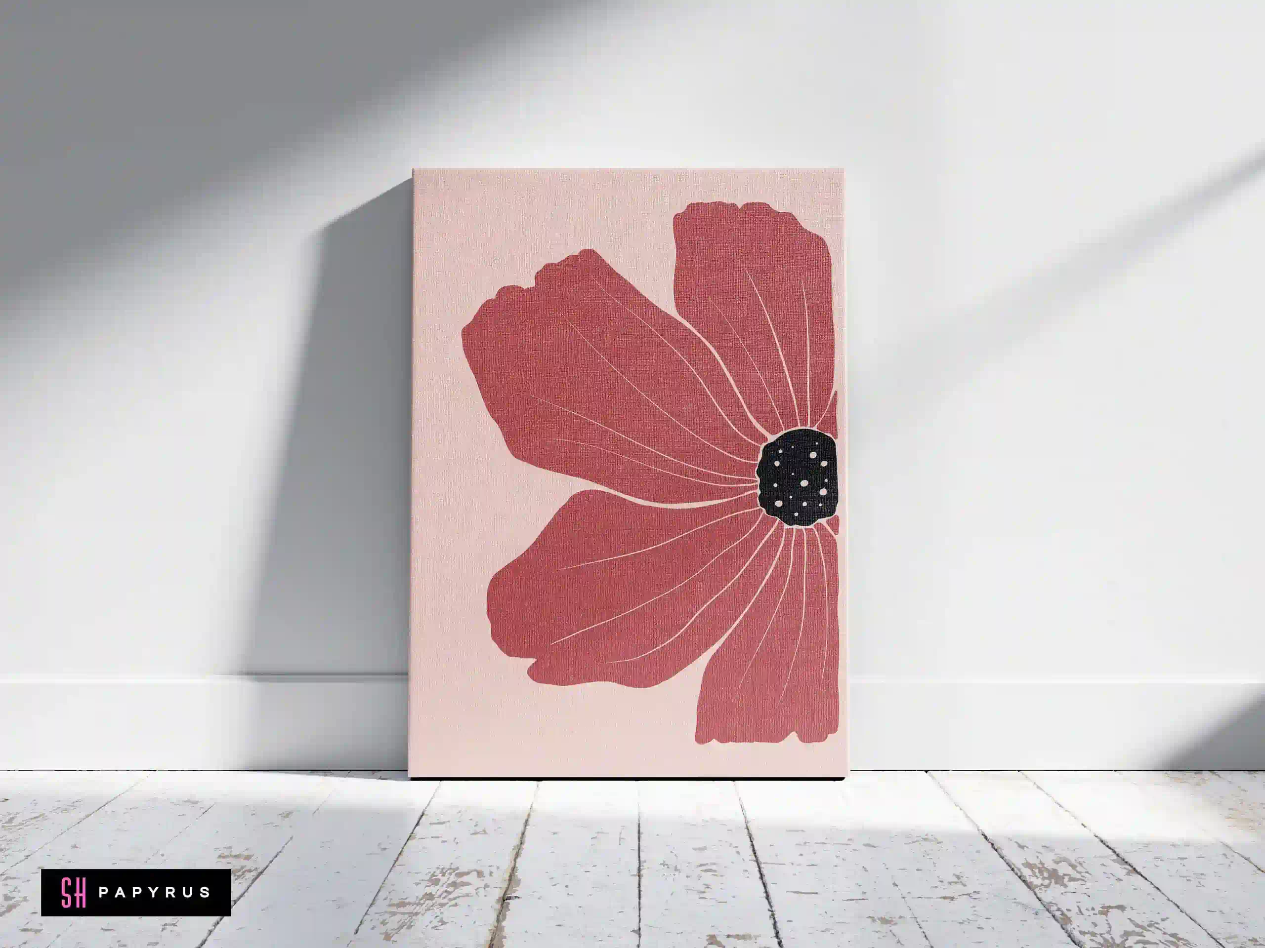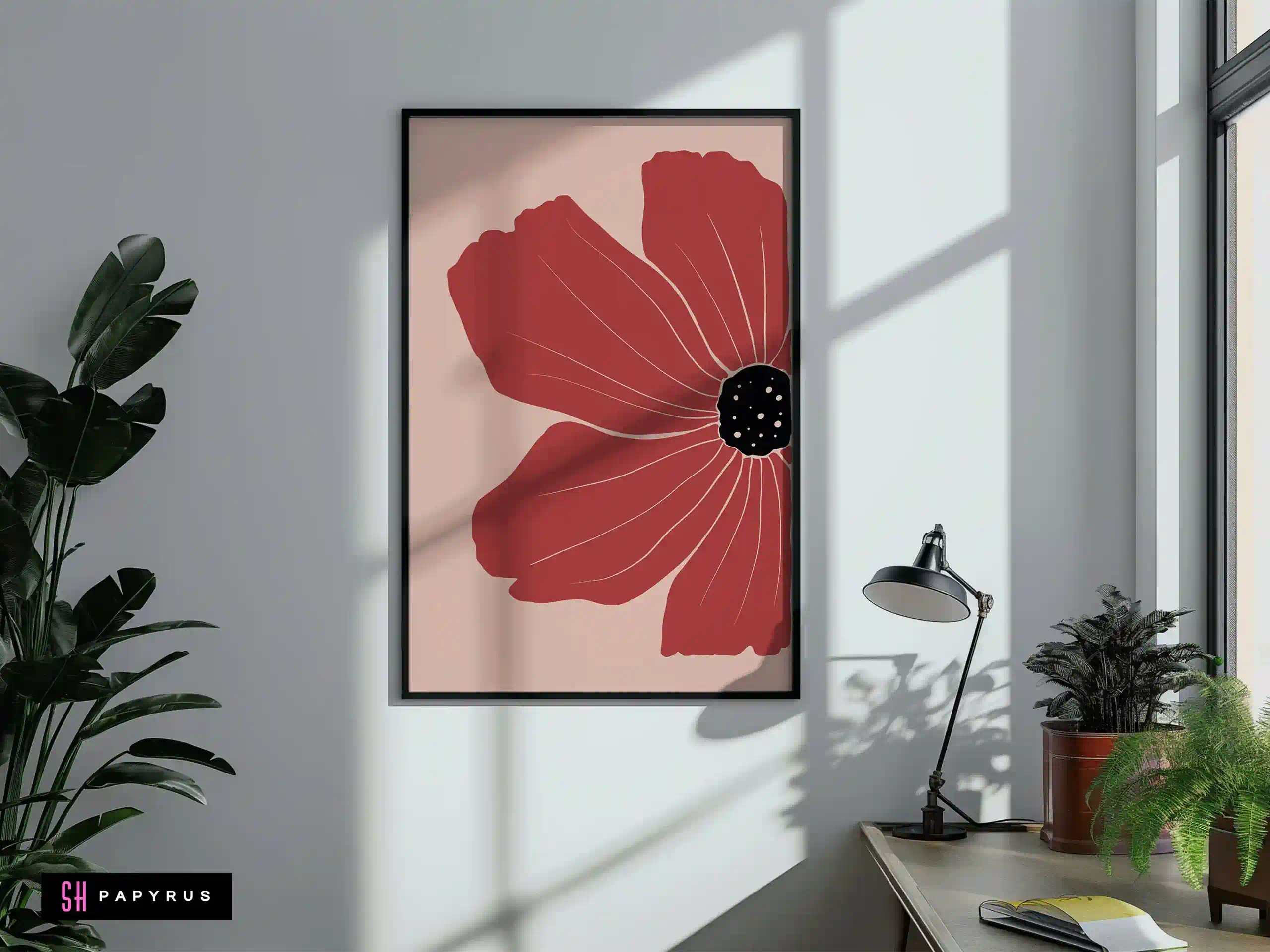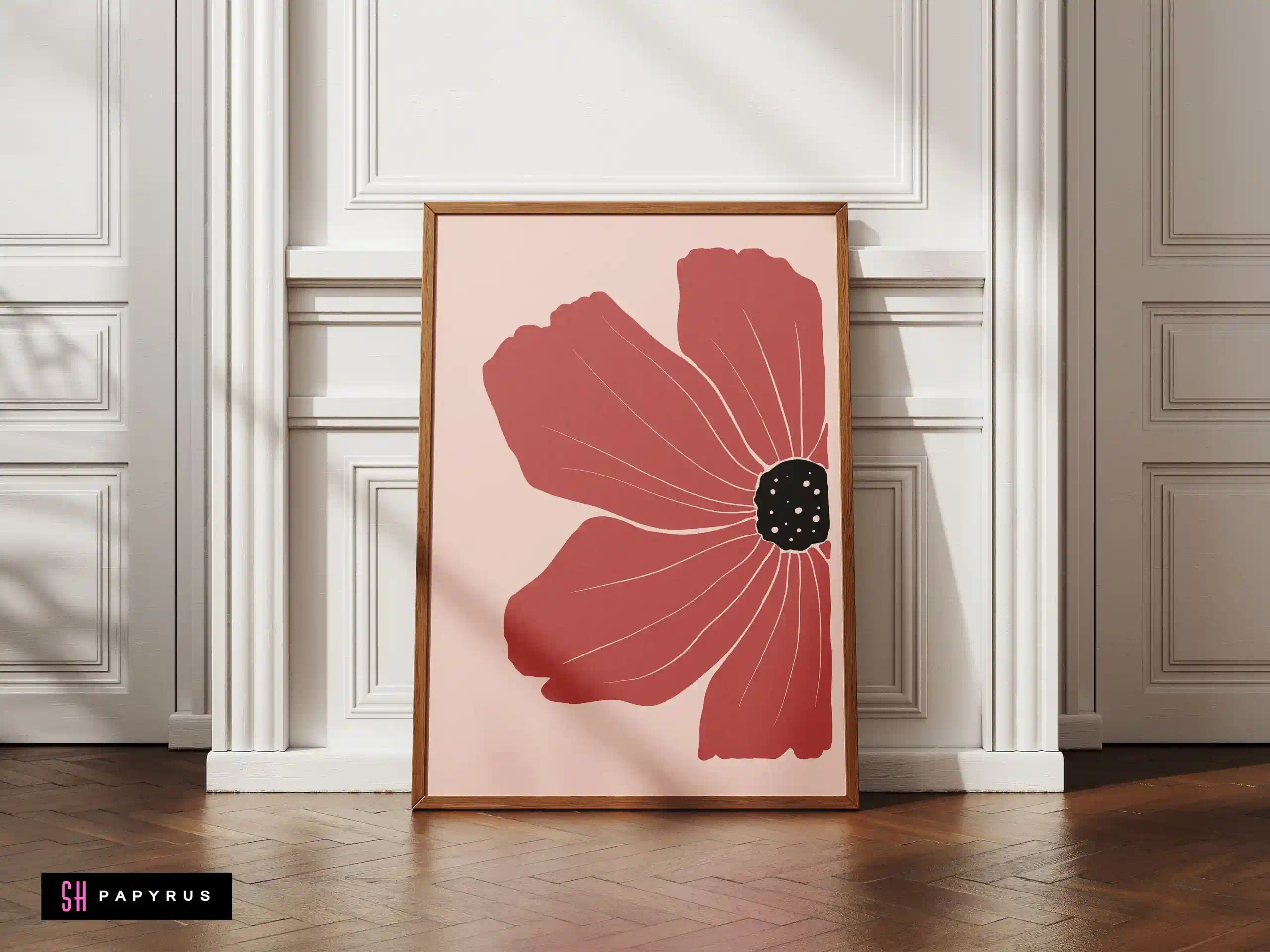 Make a statement with a Striking Terracotta Red Poppy art print! A single, large flower in a deep, rich terracotta red fills the frame against a soft, pale pink background. It’s a powerful and elegant minimalist piece. The asymmetrical composition and the delicate white lines within the petals give the flower a beautiful, artistic, and modern feel. This print is a perfect focal point. It’s bold enough to hang on its own in a living room or at the end of a hallway, and it adds a sophisticated, dramatic pop of color to a minimalist or contemporary space. Choose the format that’s right for you: an instant Digital File download, a vibrant Giclee Poster (with rich, saturated color on archival paper), a gallery-quality Canvas, or a Framed Print in a metal or wood frame, shipped ready to display.